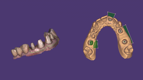 - Gérer les cas édentés en plaçant facilement des pins d'ancrage, guide chirurgical et guide de fixation basé sur la prothèse dentaire