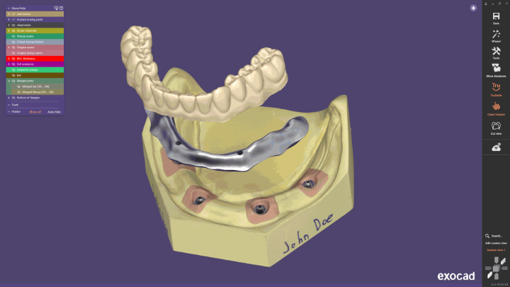 Le nouveau flux de travail "Split Denture", intégré au module barres, permet de concevoir une barre et sa suprastructure en un seul et même processus.