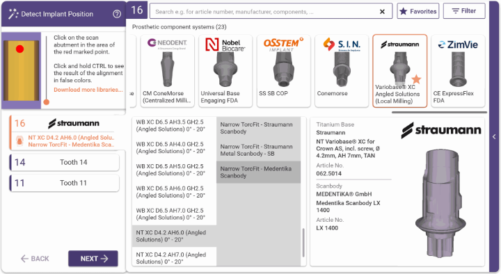 - des propositions de piliers automatisées et optimisées selon la dent concernée,